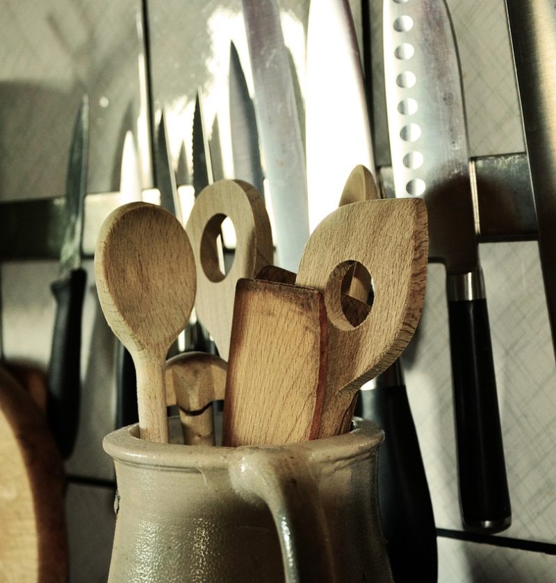 • Eleva tus habilidades culinarias con el juego de utensilios de cocina de madera de teca.